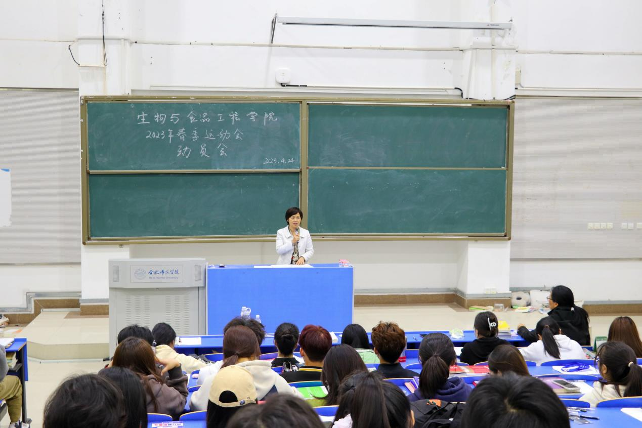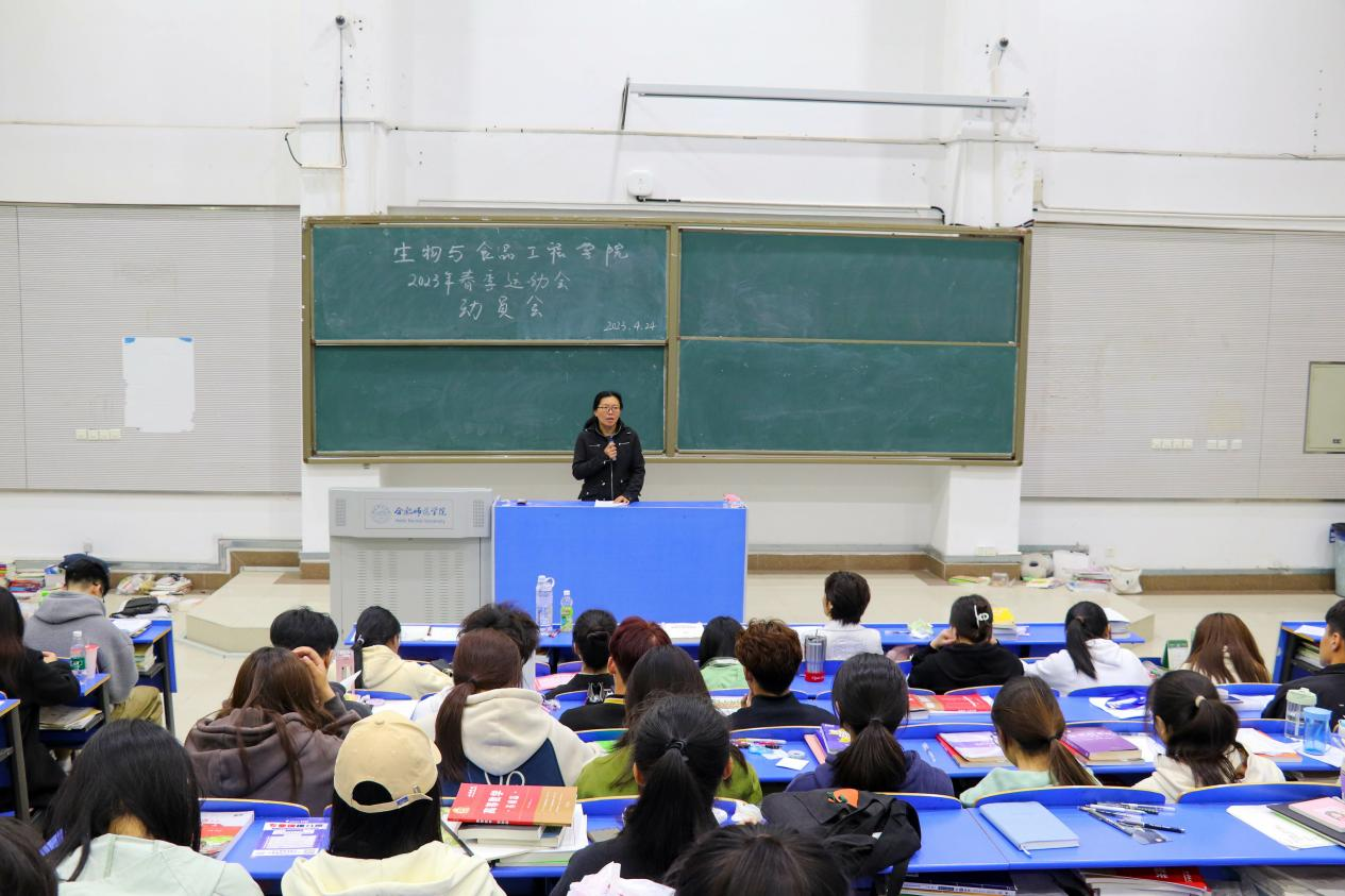 本网讯 为迎接校运动会的到来,充分调动运动员积极性,增强安全意识,推动运动会各项工作落实落细,生物与食品工程学院于4月24日中午在逸夫楼西阶一召开2023年春季运动会动员大会。生物与食品工程学院党委书记郭桃芬、副书记杨娜、分团委书记黄洁、全体运动员、院学生会全体成员以及运动会志愿者参加了本次会议。