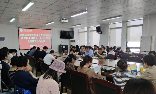 本网讯 4月19日下午,外国语学院党委在行知楼1002会议组织召开学习贯彻习近平新时代中国特色社会主义思想主题教育动员大会。学院全体教职工参加会议。会议由外国语学院党委书记马四民主持。