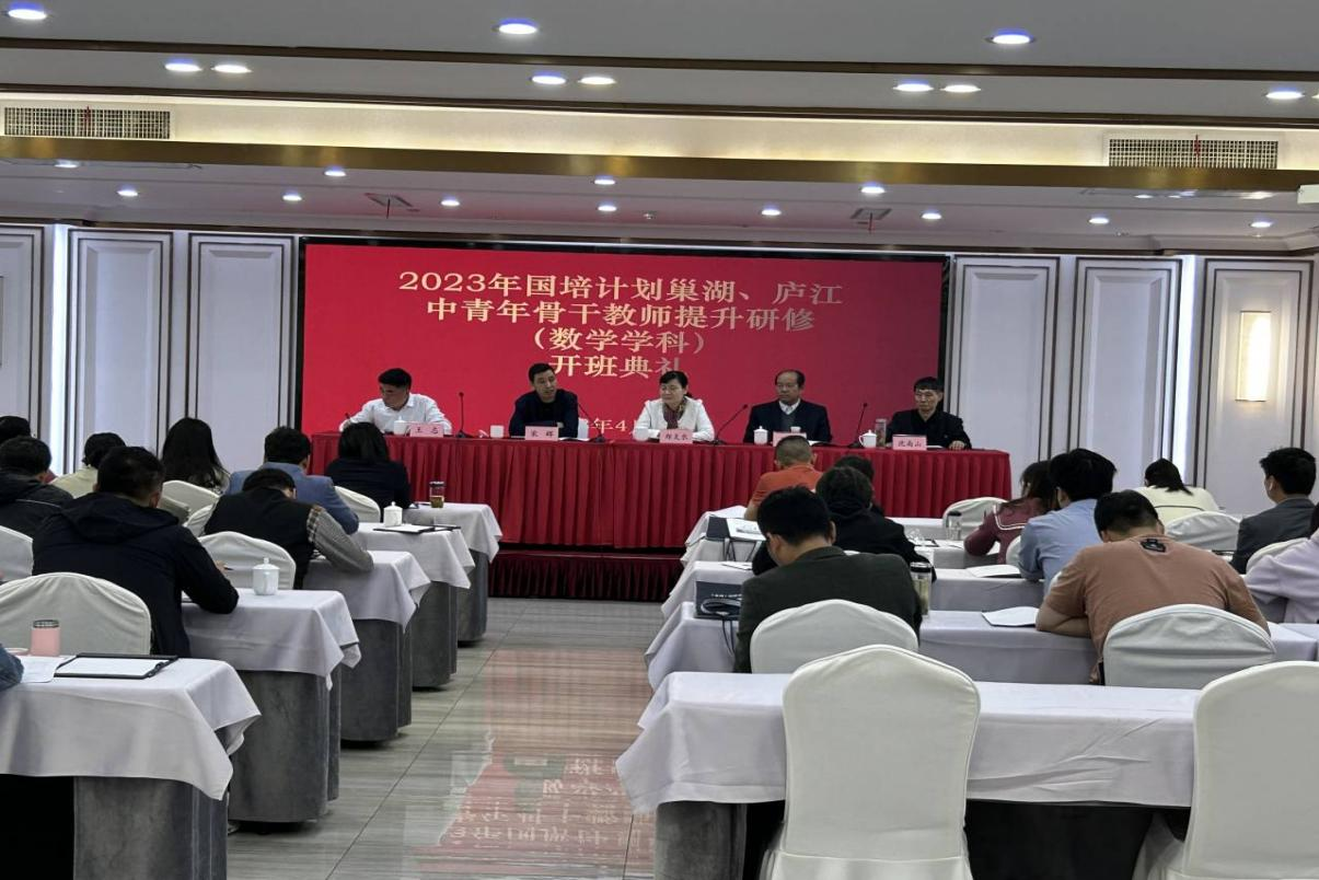 本网讯 4月22日上午,由beat365唯一官方网站承办的巢湖市、庐江县2023年“国培计划”中青年骨干教师提升研修(数学学科)在源牌国际大酒店举行开班仪式。数学与统计学院党委书记郑支农、院长王家正、继续教育学院副院长宋辉、数学与统计学院国培项目执行人沈南山出席了本次开班仪式。来自巢湖市、庐江县的36位参培学员参加了开班仪式。开班仪式由班主任王志主持。