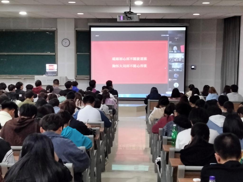 本网讯 4月12日晚,安徽大学团委书记高贵和为学院第十三期青年马克思主义者培养工程班和2023年春季学生会工作人员全员培训班全体学员作题为“做一个清澈和纯粹的青年”的专题讲座。主会场设在锦绣校区大学生活动中心,滨湖校区学员在分会场参会。