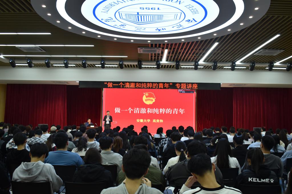 高贵和从“我们本就该清澈和纯粹”“我们能做到清澈和纯粹”“我们要永远清澈和纯粹”三个方面展开报告,指出大学生要做到“修身、立德、勤学、笃行、交友”,希望大家永远做清澈和纯粹的人,绽放最美的青春。高贵和以亲切幽默的话语、娓娓道来的叙述、生动形象的事例,将博大精深的诸子思想言简意赅地呈现给了现场师生,引起了强烈共鸣,赢得了热烈的掌声。(院团委:衡越/文 金吕峰/图)
