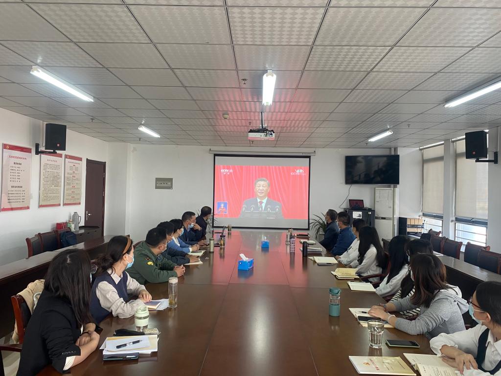 16日上午,文学院党政领导班子成员、党委委员、支部书记、系所主任和支部委员在行知楼会议室集中收看党的二十大开幕会,学院全体党员通过各种形式,收听收看开幕会现场直播。