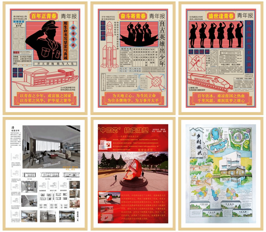 本次主题教育活动旨在展示青年学子把握时代脉搏、牢记创作初心、绘就时代风貌的使命担当。此次活动艺术设计支部党员教师积极参与学生作品指导60余人次,历经一个月的精心创作,产生了一批内涵丰富、设计精美的主题作品。