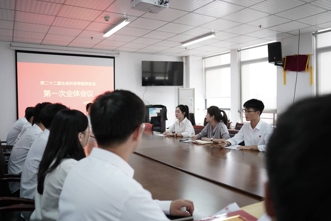 本网讯 9月20日,生命科学学院学生会在行知楼1502召开第一次全体会议。会议由分团委书记黄洁主持,13位学生会干部参加会议。