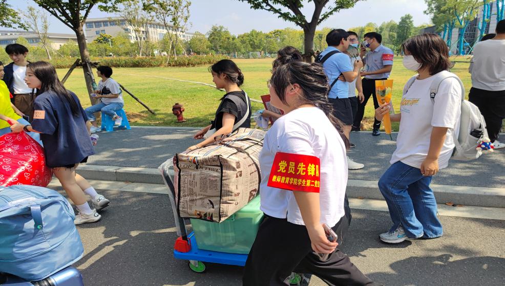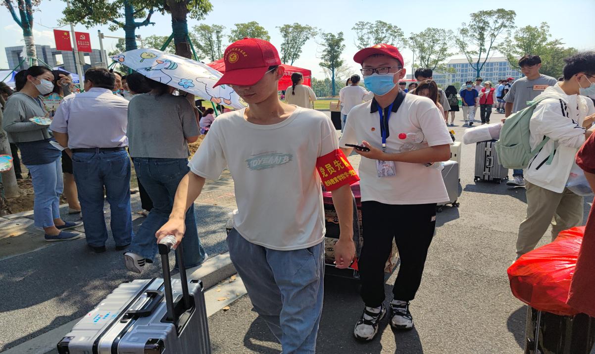 新生们精神饱满,不掩少年英气。保卫处工作人员秉着负责严谨的态度检查录取通知书和健康码后,新生有序进入校园。一进入校园,志愿者们带领新生先做核酸再送达各学院新生报道处,耐心帮助他们办理入校手续,引导其交费、办理助学贷款以及领取校园卡等,主动帮他们拎行李、介绍学校的基本情况。新生礼貌地叫着”学长学姐”,一路谈笑风生,学校里洋溢着对新生热情欢迎的氛围,真正发扬了奉献、友爱、互助、进步的精神!教师教育学院学生党支部和学生会通过亮身份、挂标牌和成立服务站、服务队等形式,带领着党员志愿者们和学生们投入到迎新当中,用热情、周到、贴心的服务,充分发挥着先锋模范作用。