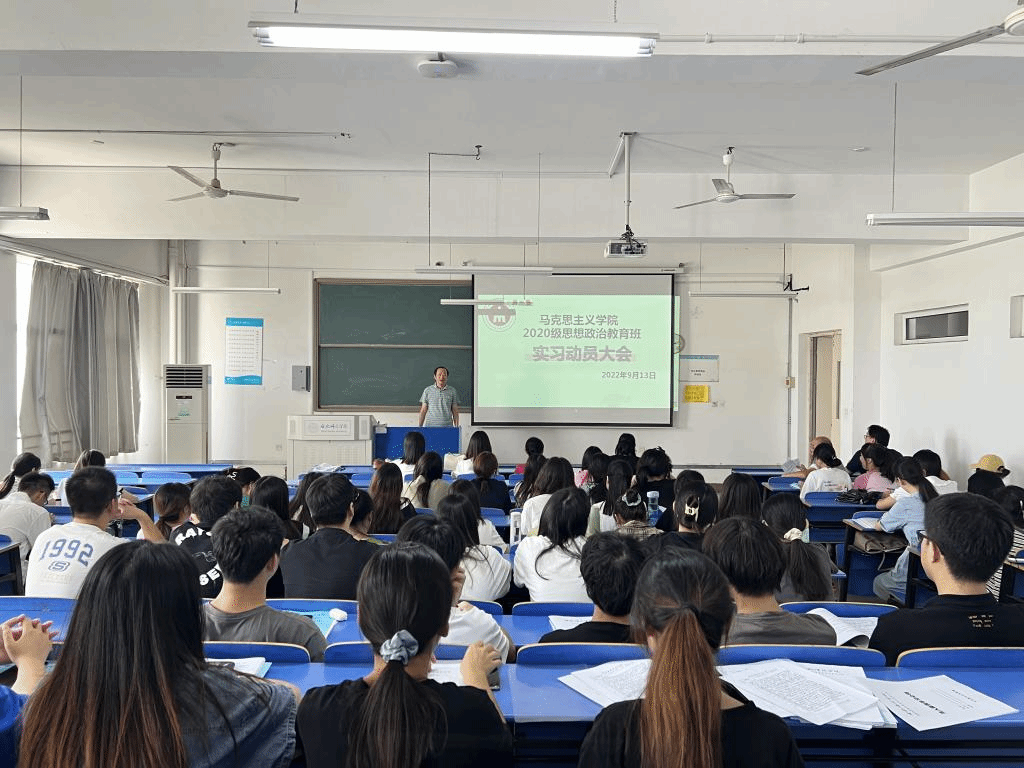 本网讯 为进一步做好教育实习工作,9月13日下午,马克思主义学院在逸夫楼A401召开2020级思政专业教育实习动员大会。马克思主义学院党总支书记吕田力、副院长陶有浩、实习指导老师、辅导员以及2020级全体学生参加会议。会议由实践教学部主任魏兵主持。