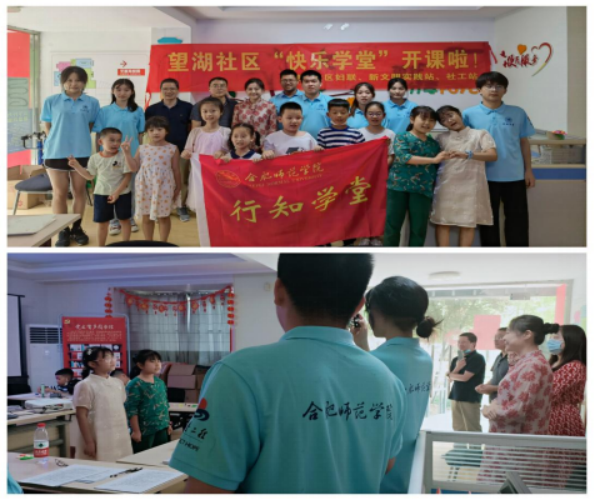 本网讯 继承行知精神,弘扬行知文化。7月7日上午,马克思主义学院“合一”行知学堂在合肥市包河区望湖社区顺利开班。来自马克思主义学院,艺术传媒学院,教师教育学院等学院的7名小先生与小学员们在合肥市望湖社区滨湖春天党群服务站举行了开班仪式。