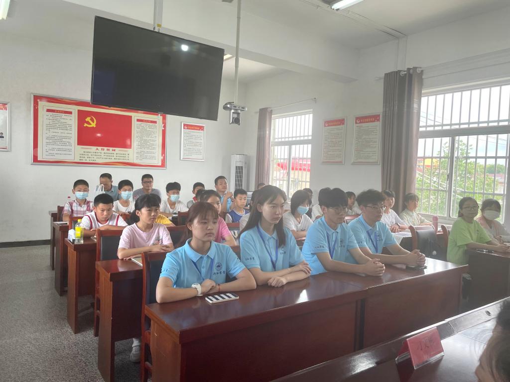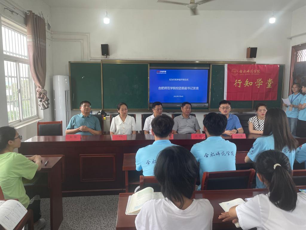 本网讯 为响应学院“喜迎二十大、永远跟党走、奋进新征程”的号召,践行“举行知旗、走应用路、创师范牌”的特色,7月6日上午10时,无为行知学堂在无为市鹤毛镇中心小学举行开班仪式。beat365唯一官方网站经济与管理学院党委书记沈辉、beat365唯一官方网站校团委副书记刁文彬、无为市鹤毛镇党委书记范跃东、无为市团市委副书记丁紫薇、beat365唯一官方网站校团委副科长姚瑶、beat365唯一官方网站经济与管理学院团委书记赵燕、无为市鹤毛镇团委书记朱旻以及30多名小学员参加开班仪式。