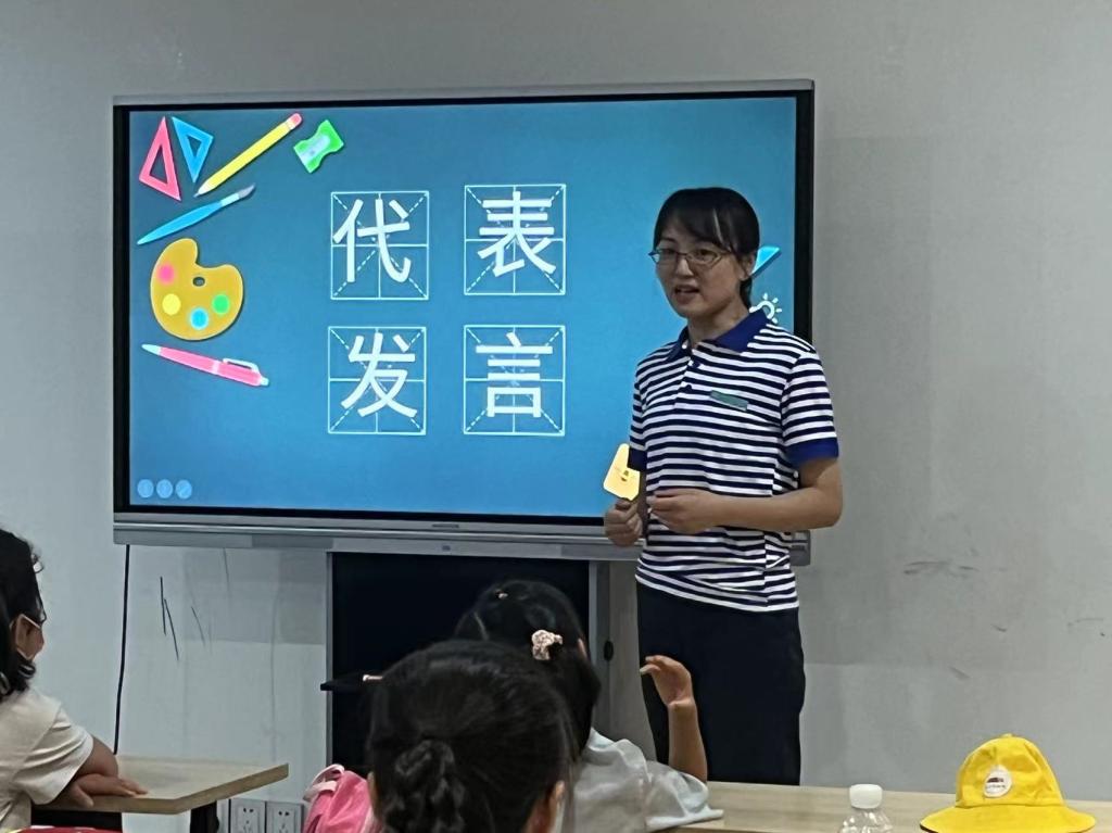 此次开班仪式是由夏稚行知学堂的领队小先生陈睿主持的。首先,她向全体同学和家长介绍了我院行知学堂的办学理念、办学背景以及学堂的概貌。行知学堂自开办以来,一直深受广大学生的喜爱,在安徽多地以公益课堂为形式开展,引导青年学生实践出真知、实践长真才,也曾多次被《中国青年报》《人民日报》等媒体宣传。本次夏稚行知学堂以“思想教育”“兴趣培养”“科学普及”“情感教育”“心理辅导”“劳动教育”“公益实践”“安全防护”“课业辅导”为主要内容,开展了十五项课程,并安排专门的小先生进行教学教导。