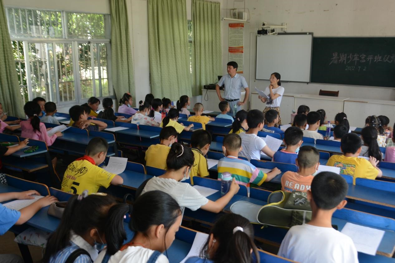 本网讯 7月2日,院团委宣城绩溪瀛洲行知学堂顺利开班,宣城市绩溪县瀛洲镇团委书记程凯、龙川小学副校长汪慧铭、学堂校外指导老师江爱慧,6名来自院团委学生组织合师青年传媒中心和9名来自安徽大学的“小先生”团队,50余名小学员在龙川小学参加开班仪式。