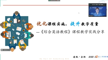 蒋道华在发言中首先介绍了我院英语(师范)专业建设、《综合英语》课程设置与教学团队的基本情况,然后结合多年来外国语学院教学团队“综合英语”课程教学的实践经验,从师范专业认证的角度详细介绍和分享了课程教学的新理念、新思路和创新教学方法,特别突出了“综合英语”课程要以单元话题为驱动,以内容为依托,发展学生英语语用能力;要能基于话题,挖掘和拓展教材内容,通过大量的补充英语阅读材料,丰富学生的语言接触,促进学生语言内化,提升学生高阶认知能力发展;要能挖掘单元话题“课程思政”内涵,融入学生价值观导向,提升学生跨文化意识能力;要能充分利用网络资源和线上线下混合式教学平台,强化学生过程性监督与考核,并以案例的方式详细呈现了我院“综合英语”课程具体教学设计的创新思路与做法,得到了线上参与老师们的热烈回应,同时上线人数达2000多人。