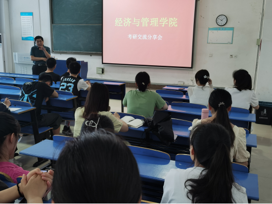 本网讯 6月3号上午10时,经济与管理学院在锦绣校区逸夫楼101教室举行2023届考研考公交流分享宣讲会。此次会议邀请了18级考研成功的同学分享备考经验,经济与管理学院党委书记沈辉、毕业班辅导员参加此次交流会。