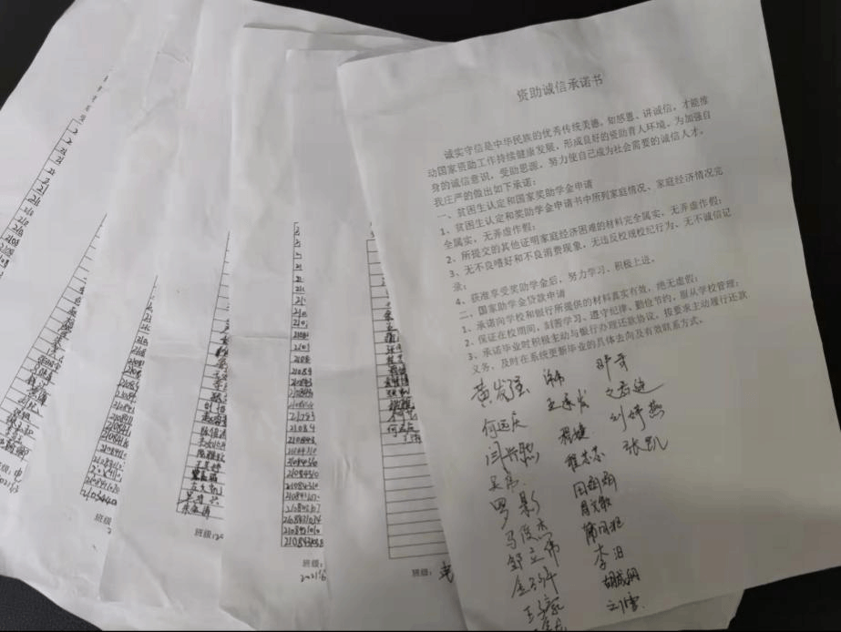 在整个五月期间,电院在本科阶段多年级广泛召开资助育人主题班会,向同学们讲解助学贷款、资助绿色通道、国家助学金等国家资助政策,让同学们充分了解资助育人的政策温度,选聘4位学生担任资助宣传大使,在校园里、去家乡中广泛宣传国家资助育人理念,身体践行感恩服务。通过开展“树立诚信意识,增强责任担当”诚信签名活动和签署诚信考试承诺书活动,让资助育人质量提升体系不断完善,“立德立行,诚实守信”的价值引领真正入心入行。