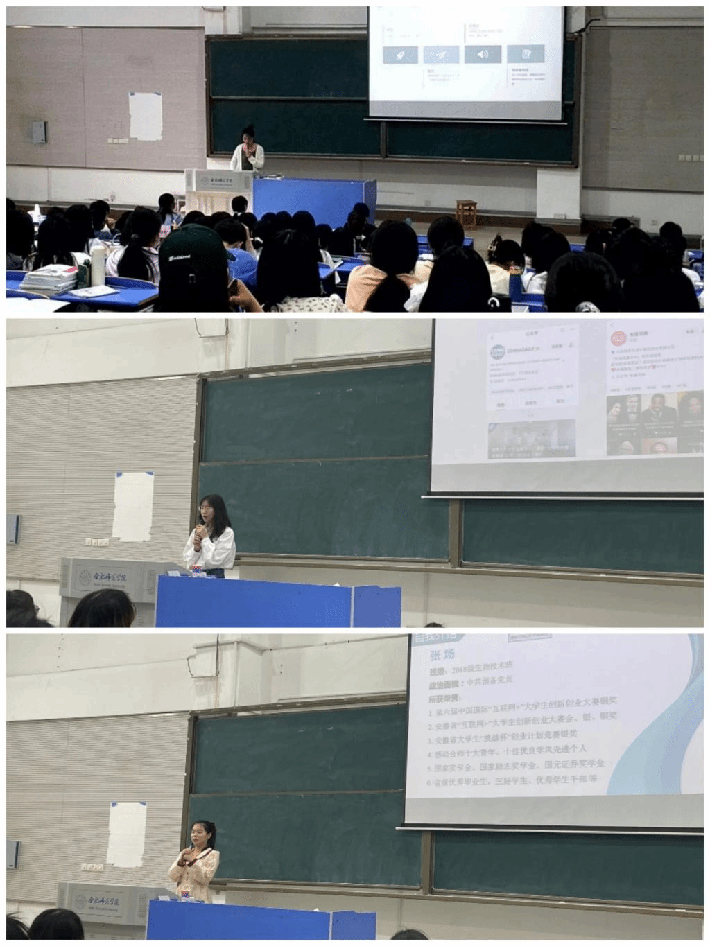 表彰大会后,张炀、卓凯丽、吴琼三位优秀学生分别做励志报告。她们表示获奖不是唯一目标,只是前进途中的一股动力。她们和学弟学妹们分享了学习和生活中的感悟,给出如何过好大学生活的建议,希望学弟学妹结合自己的实际合理定位、选择目标,在大学期间努力学习,勤于实践,心怀感恩,为未来积聚力量,为达成目标创造条件,创造属于自己的美好未来。