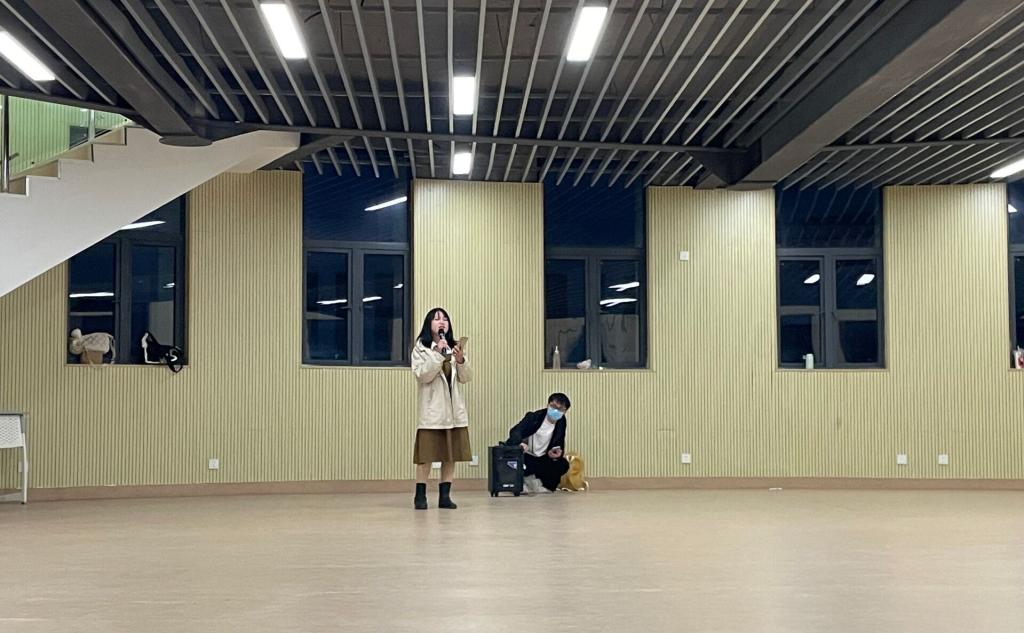 本次活动分为三个环节。首先是节目表演,其中肖昱旻和华青青分别表演了舞蹈和唱歌节目,现场气氛逐渐升温,大家都洋溢在一片活跃的氛围中。
