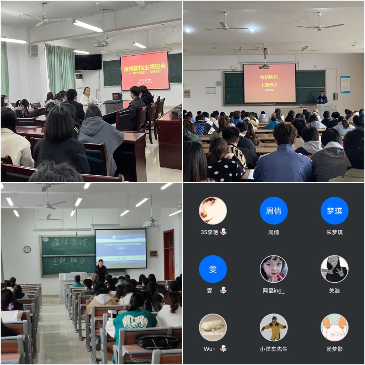 本网讯 为进一步做好校园疫情防控工作,引导学生正确认识当前疫情形势,3月18日-3月25日,艺术传媒学院各年级辅导员采用线上线下的方式,分别在锦绣、滨湖两个校区召开疫情防控主题班会。