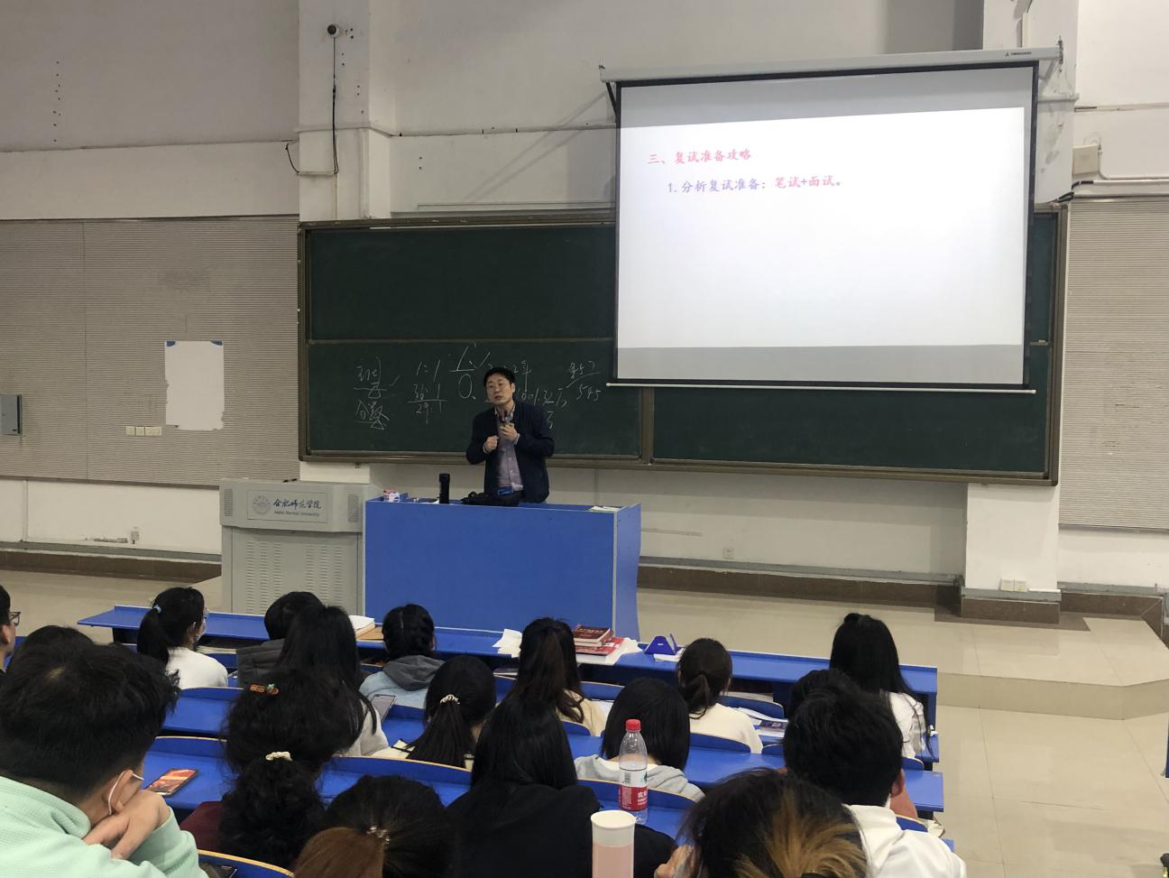 本网讯 随着2022年考研国家线的公布,研究生入学考试复试正式开启。为进一步推进学院毕业生升学工作,积极落实为师生办实事的实践要求,3月14日下午,在逸夫楼西阶一教室开展考研复试与调剂的专题指导。本次指导交流会由生命科学学院副教授王占军老师担任主讲,由2018级辅导员杨帆主持。
