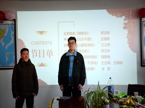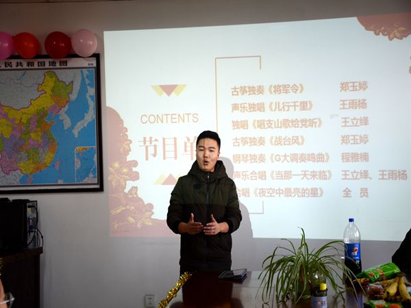 青春是张扬的,青春是独一无二的。热烈的掌声响起,联欢会就此拉开了序幕。紧张而神秘的古筝独奏《将军令》,展现了古代将士征战沙场、得胜归来的壮伟场面;情感丰富的《儿行千里》,为在场所有人带来了内心的感动;家喻户晓的红歌《唱支山歌给党听》,为党的百年华诞送上生日祝福;气势磅礴的古筝曲目《战台风》,用紧张激烈而又优美抒情的音乐,成功地塑造了码头工人大无畏的精神和压倒一切困难的英雄气概;优雅明快的钢琴独奏《G大调奏鸣曲》,将晚会带进了欢快的气氛中;值得一提的是,退伍返校大学生王立绎同学和他的同学王雨杨共同合唱《当那一天来临》,生动描绘了军队战士士气磅礴、战意凛然的宏伟画卷,也时刻提醒我们,时刻牢记历史教训,不能轻易懈怠,要以一种居安思危的态度防患于未然;联欢会步入尾声,就业创业工作处全体人员和就业创业工作助理共同合唱《夜空中最亮的星》,将全场气氛带入高潮,也激励着每个人要带着青春的梦想,带着年轻的底气与冲劲,向梦想展示热爱的力量。