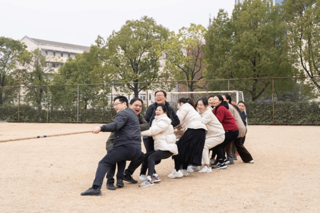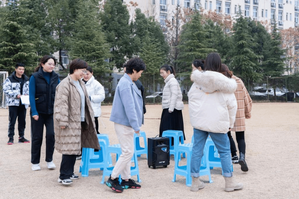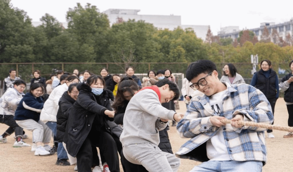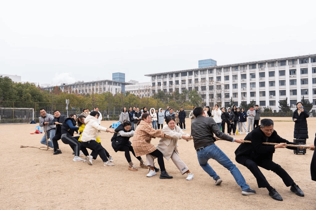 参加本次趣味运动会的为全体生科院教工和学生会干部,共设立四个比赛项目:拔河比赛、两人三足、抢板凳、背新娘。参赛队伍分别为生物技术教工队、食品质量与安全教工队、生物科学教工队、实验行政教工队和学生干部队。第一个比赛项目是拔河。当裁判哨声响起,参赛队员紧握长绳,拼尽全力向后拉,绳子中间的红飘带左右摇摆,在比赛进入胶着状态时,大家毫不退却,咬紧牙关,坚持到底。周围助威的师生热情高涨,恨不得亲自上场拉一把,加油声、呐喊声、欢笑声此起彼伏,现场气氛热烈、高潮不断,原本安静的操场瞬间沸腾起来。第二比赛项目是两人三足。一人左腿与另一人右腿的小腿用绳子绑上,每批次5支队伍,在观众们的加油欢呼声下,大家团结协作、争先恐后,一起奔跑到终点。第三比赛项目是抢板凳。每批次18人参加,大家随着欢快的音乐围着椅子转圈,音乐一停便开始争先抢坐在椅子上,一轮又一轮,气氛紧张又欢快。最终趣味运动会以背新娘为结尾,在师生的欢声笑语中拉下帷幕。