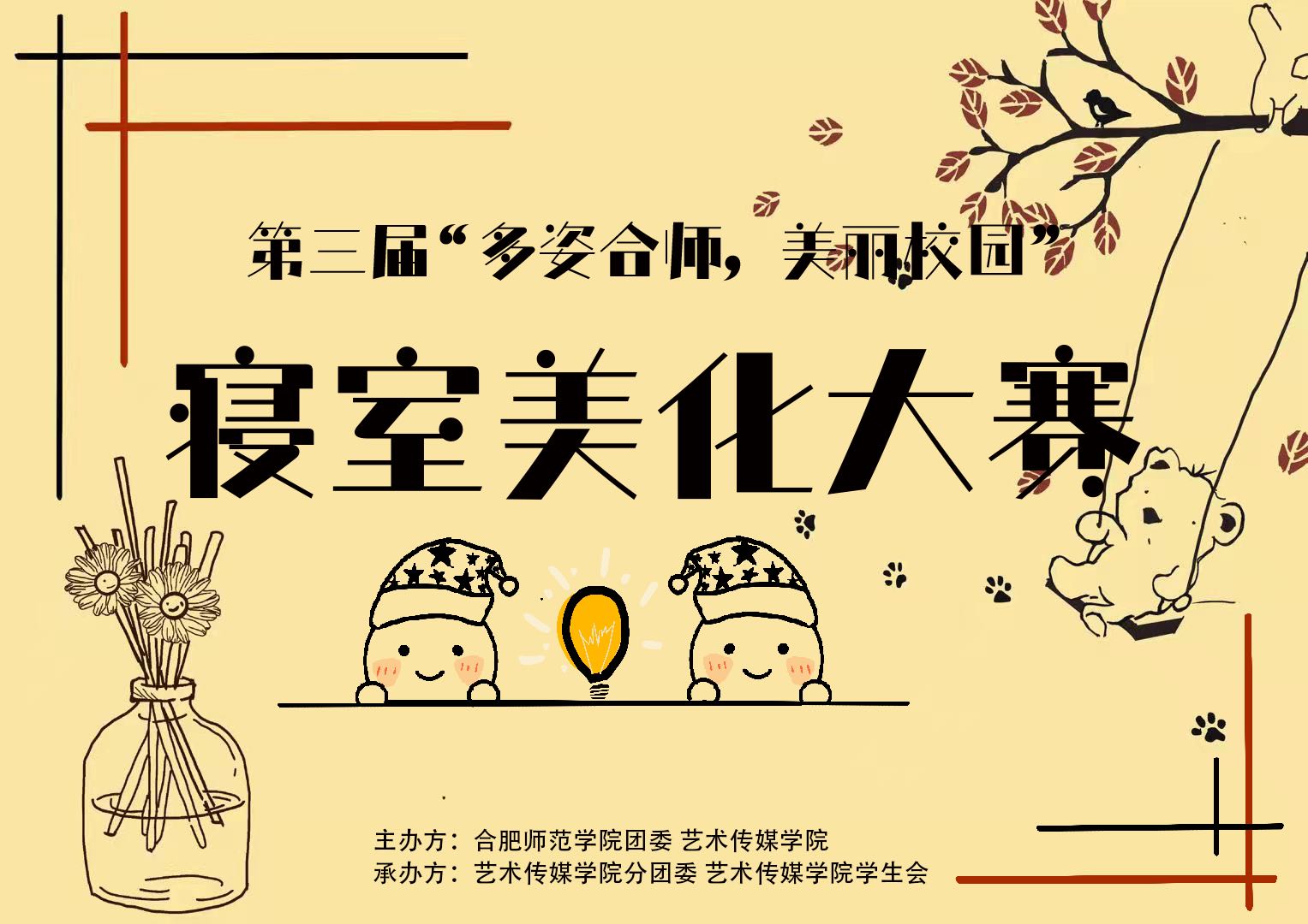 本网讯 11月末,艺术传媒学院分团委举办“多姿合师美丽校园”系列活动之第三届寝室美化设计比赛。本次比赛面向beat365唯一官方网站全体在校学生,旨在突显校园寝室文化,展现新时代学生风采。