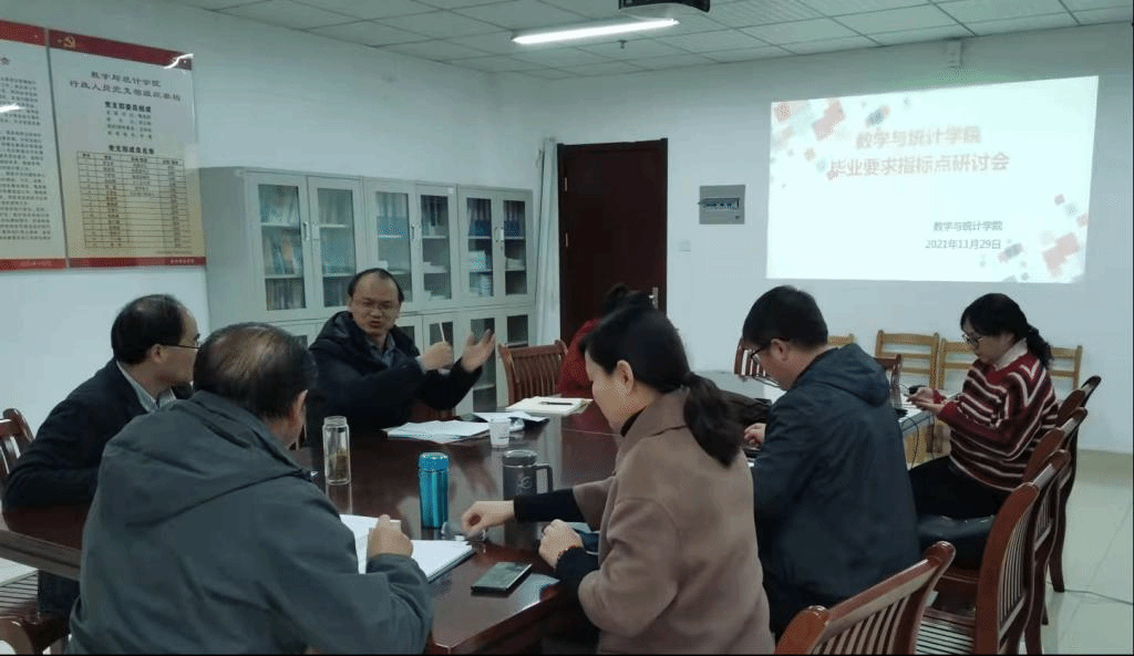 本网讯 11月29日下午,数学与统计学院领导班子成员以及师范专业认证办公室骨干教师在行知楼1108召开会议,研讨数学与应用数学师范专业认证自评工作。