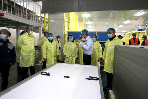 座谈会后,马平、唐洁等一行还参观了合肥晶澳太阳能科技有限公司生产车间,实地感受企业工作环境、了解产品生产等情况。