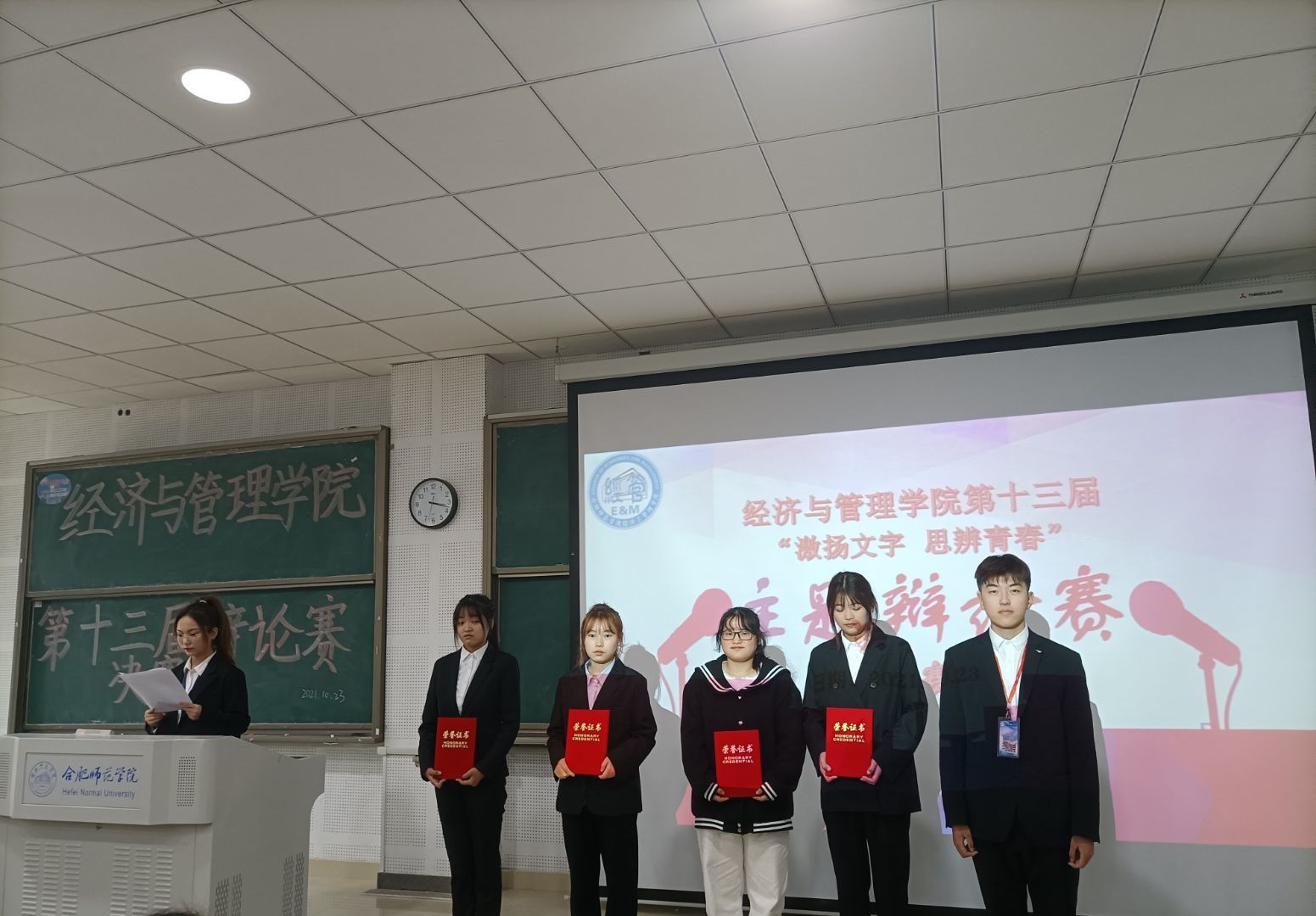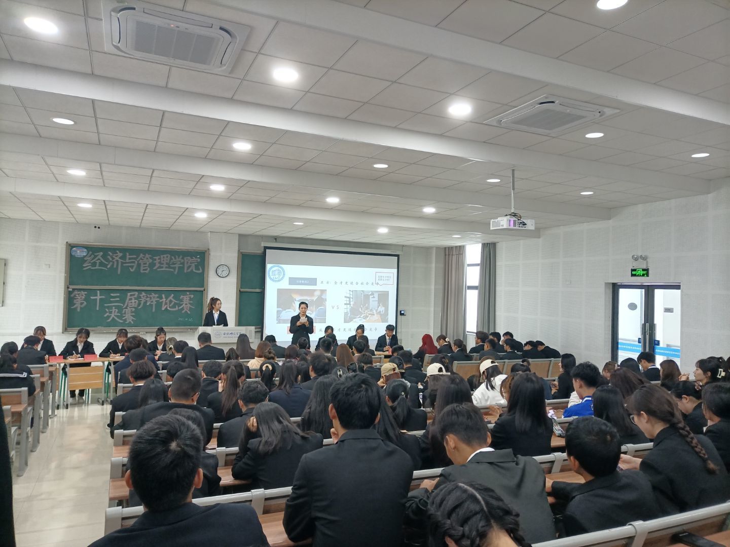 本网讯 以论明理、以辩会友。10月23日下午,经济与管理学院主办的第十三届主题辩论赛决赛于在滨湖校区博学楼D101顺利举行。此次辩论赛邀请学院学生会主席团以及我校辩论队的优秀队员担任本次大赛评委,各专业班级代表参加此次活动。