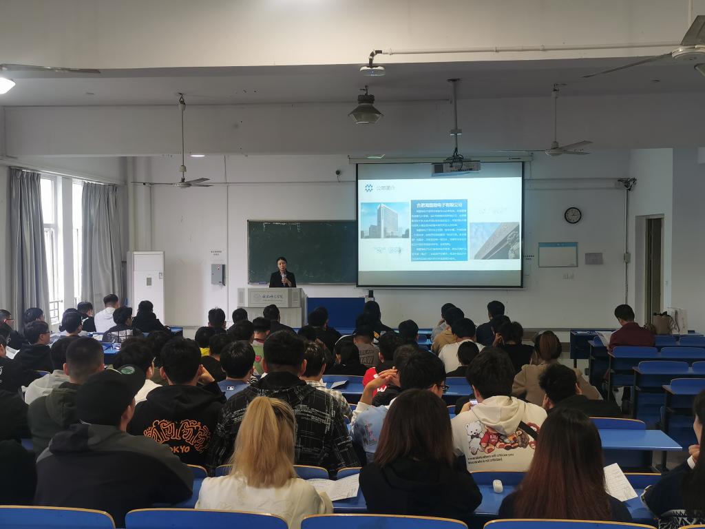 本网讯 为推进电子信息与电气工程学院2022届毕业生就业工作,集中帮助毕业生解决就业工作中的问题困惑,10月13日下午,学院在逸夫楼A203教室举办合肥海图微电子有限公司专场招聘宣讲会。由微电子科学与工程系主任鲁世斌教授主持,来自学院的微电子科学与工程专业、电子信息工程专业、通信工程专业、电气工程专业等数百名毕业生和毕业班辅导员参加了本次招聘会。