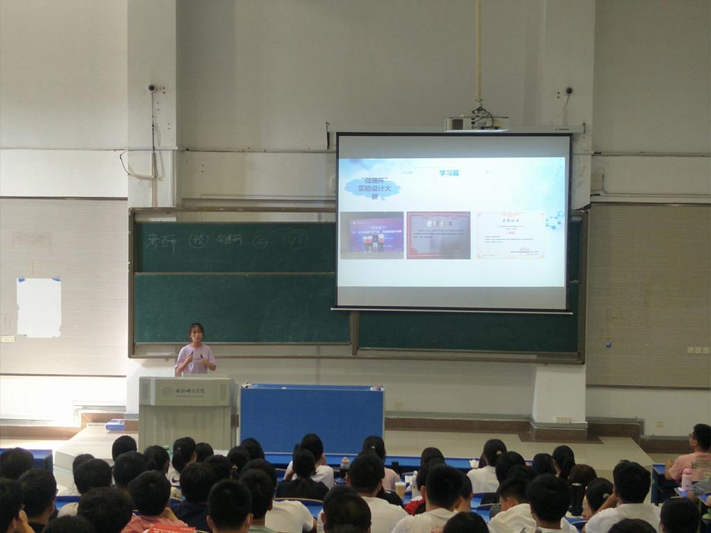 本网讯 近日,根据《关于在2021级新生中实施入党启蒙计划的通知》组组〔2021〕21 号文件要求,为进一步落实学校学生党员教育培训标准化全程化建设工作要求,加大低年级发展党员工作力度,做好新生入学后的早教育、早发现、早选拔、早培养工作,化学与化学工程学院党委在2021级新生中开展“党的基本知识”集中教育暨入党启蒙教育。会议由化学教育系学生党支部书记王庆林主持,全体新生参会。