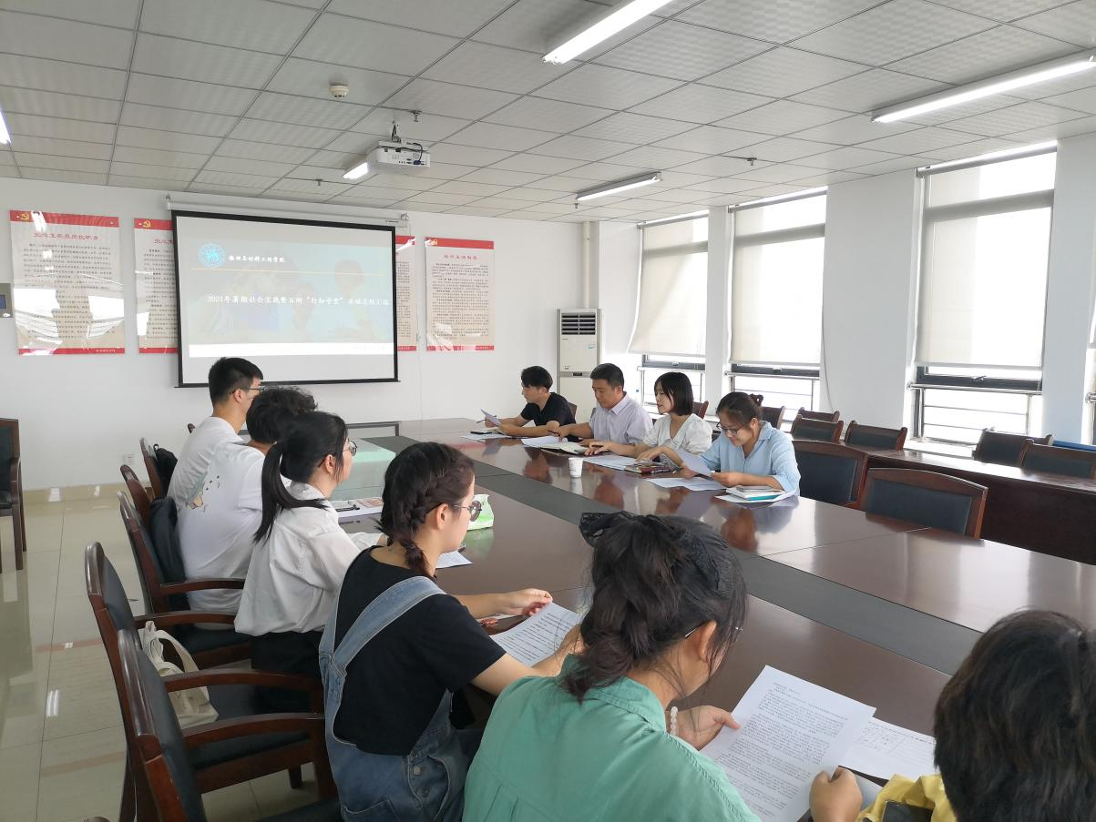 本网讯 为进一步总结暑期“三下乡”暨“行知学堂”实践活动,交流实践体会,分享实践成果,9月15日下午,物理与材料工程学院在行知楼1202会议室召开2021年暑期“三下乡”暨“行知学堂”实践活动总结座谈会及考评会。物理与材料工程学院党委副书记吴震、分团委书记吴梦云、行知学堂指导教师韩翔、李世丽以及2021年暑期社会实践学生代表参加了会议。