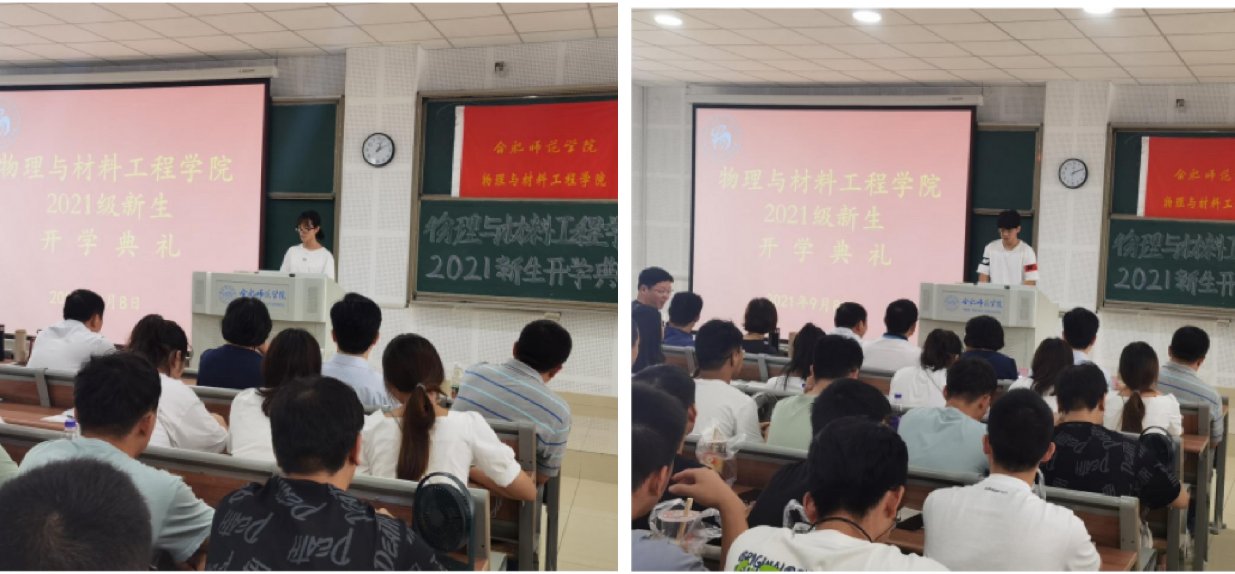 本网讯 硕果金秋,满载着喜悦和幸福。蓝天白云,怀揣着憧憬和理想。9月8日下午,物理与材料工程学院在滨湖校区博学楼隆重举行2021级新生开学典礼。学院党委书记唐洁、副院长李大创出席大会,各专业负责人、辅导员及2021级全体同学参加。典礼由学院党委副书记吴震主持。