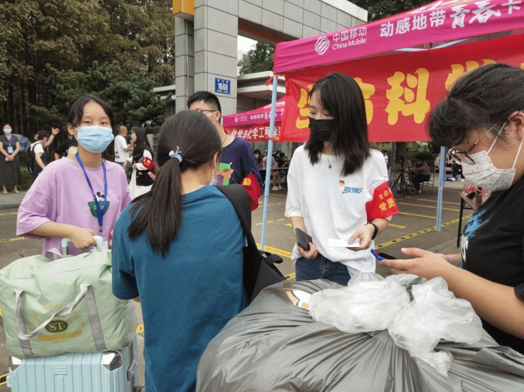 上午七点多,新生陆续报到,迎新工作如火如荼,领导班子亲临现场,指挥协调迎新工作,学生党员、学生干部以及志愿者们忙碌的身影穿梭在校园的各个角落,他们热情有加、井然有序的引导新生报到、做核酸检测、帮助新生搬运行李、耐心回答新生和家长的疑问。辅导员带领班助们仔细核实新生入学信息、发放校园卡、安排住宿等。整个报到工作,忙而不乱,稳中有序,青春的歌声在校园上空飘扬,青春的气息涌动在校园的各个角落。