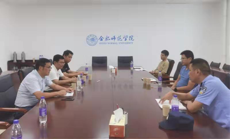 本网讯 9月8日下午,巢湖市黄麓镇政法委书记彭云龙、黄麓派出所所长裴先宇到滨湖校区调研反电信网络诈骗工作。学院党委委员、滨湖校区综合管理办公室主任赵帮恚、保卫处副处长马强强及相关工作人员参加会议。