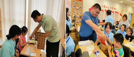 开班仪式结束后,学院领导来到教室,了解小学员们的暑期学习、生活情况,与“小先生”、小学员们亲切交谈,随后还给小学员们发放了学习用品和小礼物。