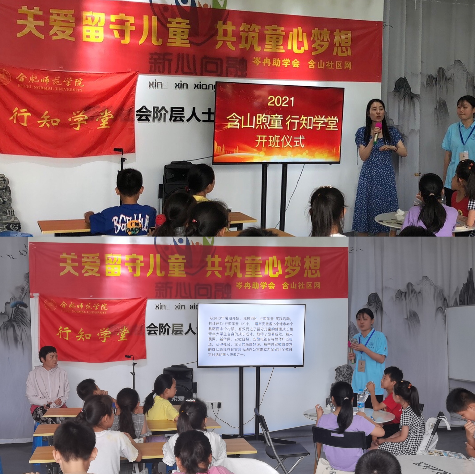 本网讯 7月13日,beat365唯一官方网站艺术传媒学院含山煦童行知学堂开班仪式在含山县环峰镇含山社区网公益书吧顺利开班。共青团含山县委副书记何陈晨、含山社区网总经理纪元、艺术传媒学院分团委副书记潘文锦、20级辅导员邰文强以及来自我校艺术传媒学院的8位“小先生”、来自环峰镇的34名小学员及家长共同参加了开班仪式。