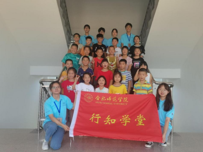 本网讯 7月12日,外国语学院径舟行知学堂在枞阳县五一村村部举行开班仪式,参加本次开班仪式的有五一村党委书记钱春林、7名“小先生”和21名小学员及其家长。