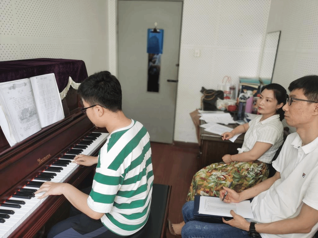 钢琴系教师指导的2018级、2019级和2020级音乐学专业共计175名学生,分五组在教师琴房逐一进行考核。两名监考老师从本月所练习的四首曲目中随机指定一首,学生进行自弹自唱,监考教师根据学生考核情况,进行成绩评定。