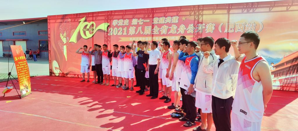 本网讯 为深入贯彻落实习近平总书记在党史学习教育动员大会上的重要讲话精神,推动党史学习教育持续开展,做到学史明理、学史增信、学史崇德、学史力行,教育引导学院全体党员同志学党史、悟思想、办实事、开新局。体育科学学院党总支组织全体党员参加 “学党史、迎七一、党建共建”2021年第八届全省龙舟公开赛(肥西站)。本次赛事由安徽省体育总会主办,安徽省水上运动管理中心、安徽省龙舟运动协会承办,紫蓬山旅游开发区管理委员会协办,在紫蓬山安徽省水上运动管理中心举行。