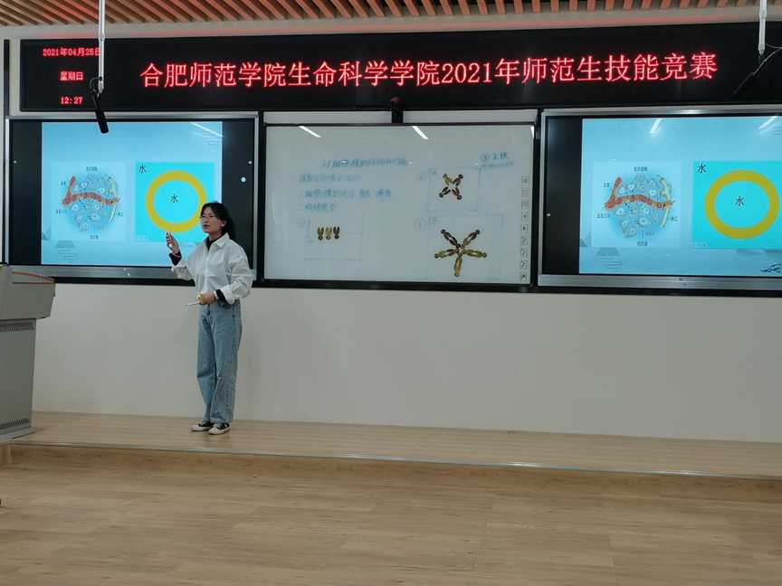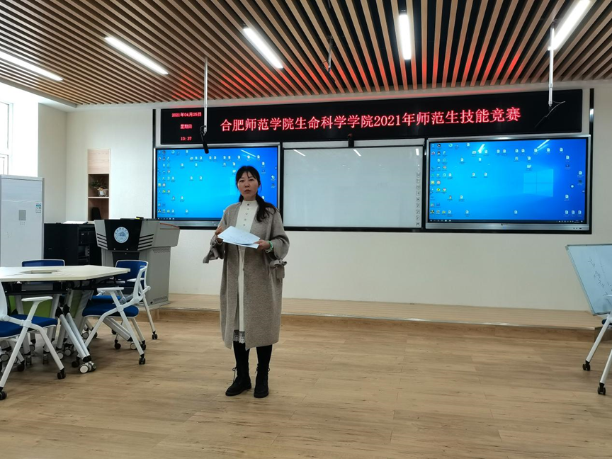 本网讯 为培养师范生的教学技能,增强教学实践能力。4月25日上午,beat365唯一官方网站生命科学学院2021年师范生技能竞赛在逸夫楼502室成功举办。参加本次比赛的共有15名同学,分别来自18、19级生物科学(师范)专业。本次活动由生物科学系主任孙娴主持,并邀请了合肥四十六中的周龙清老师、合肥一中的朱承慧老师担任此次评委。生命科学学院徐慧敏老师及部分学生观摩了本次竞赛活动。