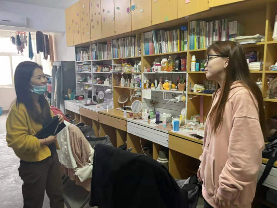 4月20日,在音乐学院党总支副书记蔡成梅的带队下,班主任、辅导员逐步的、分层次的深入到宿舍,开展集体走访。在走访的过程中,蔡成梅要求辅导员、班主任,腿要勤,不漏访学生宿舍,尤其关注混合宿舍和问题宿舍;眼要尖,从宿舍的环境中能够分析学生是否长期没在宿舍住宿,是否违规用电,是否厌学、懒学;心要暖,对于“后进”的宿舍或者个人,我们要多问几句,多了解情况,多帮助教育,共同分析“后进”的原因,一起规划发展方向。