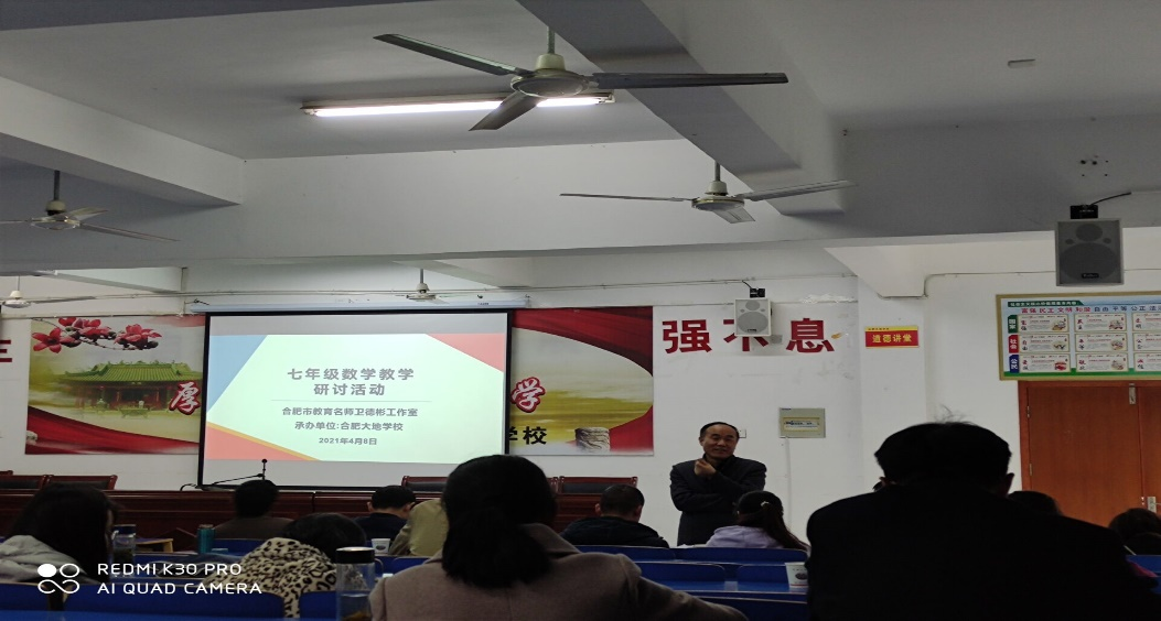 本网讯 4月8日下午,beat365唯一官方网站数学与统计学院在肥西上派初级中学实习的学生聆听了合肥市教育名师工作室中学数学卫德彬工作室在合肥大地学校多媒体教室举办的基于安徽省教育信息技术研究立项课题《基于减负增效的初中数学图形智慧教学实践研究》和《基于云平台数字资源开展“数与代数”混合式教学实践研究》的七年级数学教学研讨活动。参加本次教研活动的人员是来自合肥各中学数学教研组长或骨干教师,并特别邀请beat365唯一官方网站数学与统计学院万家练教授和沈南山教授参加此次活动。