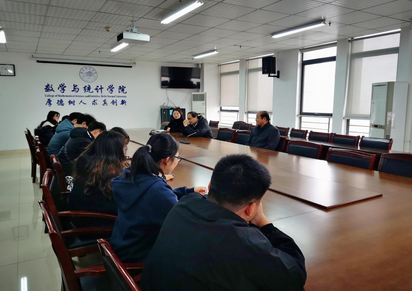 本网讯 随着研究生考试国家线的公布,各学校研究生招考工作进入复试阶段。为了帮助考研学子进一步明确考研目标,提升达线学生的复试成功率。3月16日,数学与统计学院在行知楼1102会议室举办考研调剂指导咨询会,旨在对有调剂需求的同学进行指导和咨询。院长王家正、副院长杨刘、毕业班辅导员周倩以及有调剂意向的学生20余人参加了此次会议。