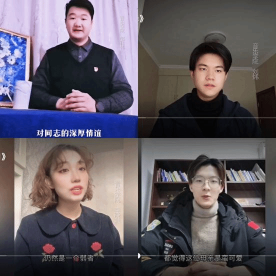 音乐学院青年学生与“青春学习营”第三组营员在指导老师的帮助下,利用假期时间通过文艺作品、经典红色文学、经典理论学习刊物,学习中共党史、新中国史、改革开放史、社会主义发展史,共同打造了“四史”学习与宣讲自媒体平台“1688青春学习”,在平台上已经推出了“红色书信”诵读,宣讲方式和内容得到广大师生的好评。