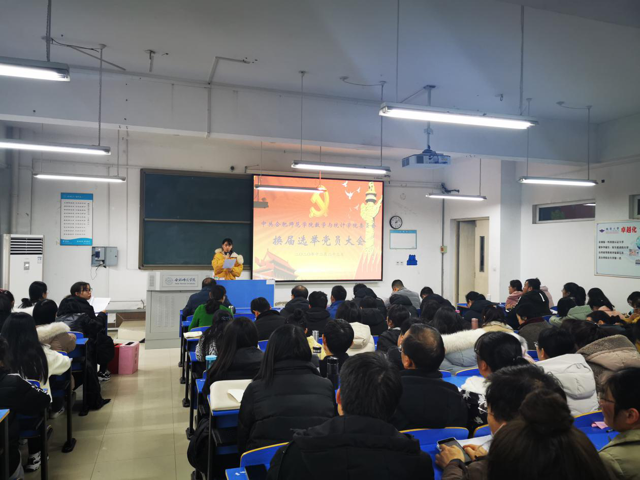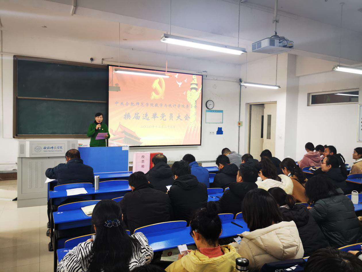 本网讯 12月23日下午,数学与统计学院党委在锦绣校区逸夫楼A107教室召开了新一届党的委员会委员、纪律检查委员会委员换届选举党员大会,全体师生党员参加了会议,党委组织部干部科科长余军到会指导。会议由学院副书记、院长王家正主持。