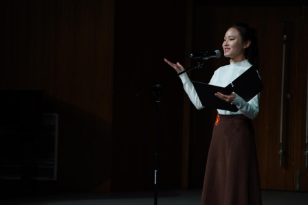 本次大赛由选手亮相、个人独颂、才艺展示、选手间搭档朗诵这四个环节组成,评委老师在后三个环节中为选手打分,进行角逐。大赛的第二个环节,选手们道出了心中的激情与感恩,《最可爱的人》、《敬畏生命》、《向阳而生》等等优秀作品令人影响深刻。第三个环节选手们的才艺展示更是精彩绝伦,令人目不暇接。最后一个环节更是证明了选手们“友谊第一,比赛第二”的精神,选手们互相组队完成比赛。