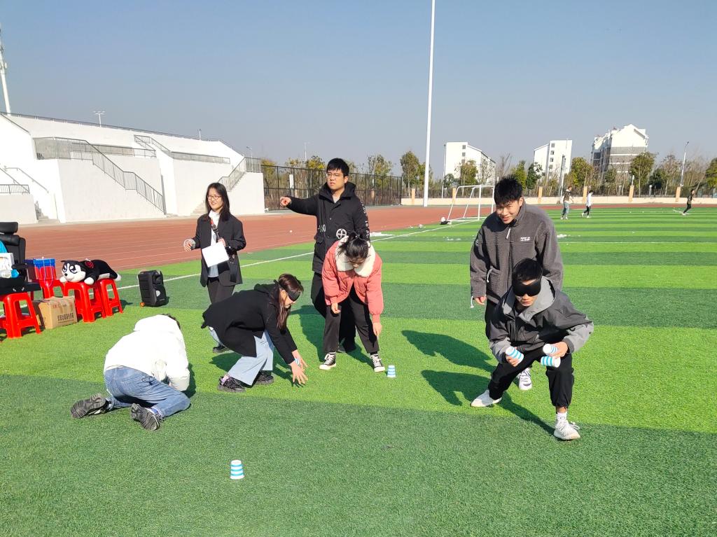 这些项目中既有个人比拼也有团队竞争,有趣的项目立刻点燃了同学们的激情。在盲人指路环节,目标近在咫尺选手却毫不知情,令观众紧张得连连跺脚。在踩气球环节,选手使劲浑身解数躲避对手,生怕自己的气球被踩。