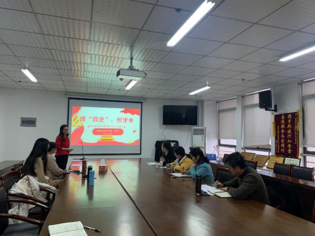 比赛伊始,程诚老师通过介绍中国共产党在“四史”中的主导性作用,强调了“四史”学习是坚定理想信念、提升党性修养和提高干部工作能力的需要,深入学习“四史”,才能牢记初心使命。随后,陈倩颖老师和吕慧芳老师从“什么是四史”、“为什么要学习四史”的角度阐述了自己对“四史”学习的认识。其中,陈倩颖老师就如何做到不忘初心、勇担责任进行了深入的讲解,而吕慧芳老师指出高校教师应将课堂作为立德树人主渠道的重要性,将“四史”学习教育内容融入课堂教学,做到以史育人,以文化人。陈亚军老师谈了研读“四史”之感悟,强调作为党员教师,要牢记党的宗旨,增强服务意识,不断强化自身专业素养,不断增强工作的主动性积极性,引导学生在学习、生活中发挥更多积极向上的正能量。李玲玲老师重点讲解了中国共产党的发展历程,在改革开放,新中国发展和社会主义发展中的作用,认为当代党员教师应深化“四史”学习,以史为鉴,资政育人。最后,王恒生老师和许晓娟老师分别从“社会主义发展史”和“党性修养”方面分享了他们学习“四史”的心得体会,王恒生主要介绍了中国特色社会主义发展的艰辛历程,强调了中国共产党在这一过程中的艰辛付出与努力奋斗;而许晓娟老师则对“四史”学习中汲取的党性修养意识娓娓道来,指出共产主义的理想信念是共产党人的精神支柱,应该时刻牢记为人民服务的宗旨,做一个纯粹而正直的共产党人。