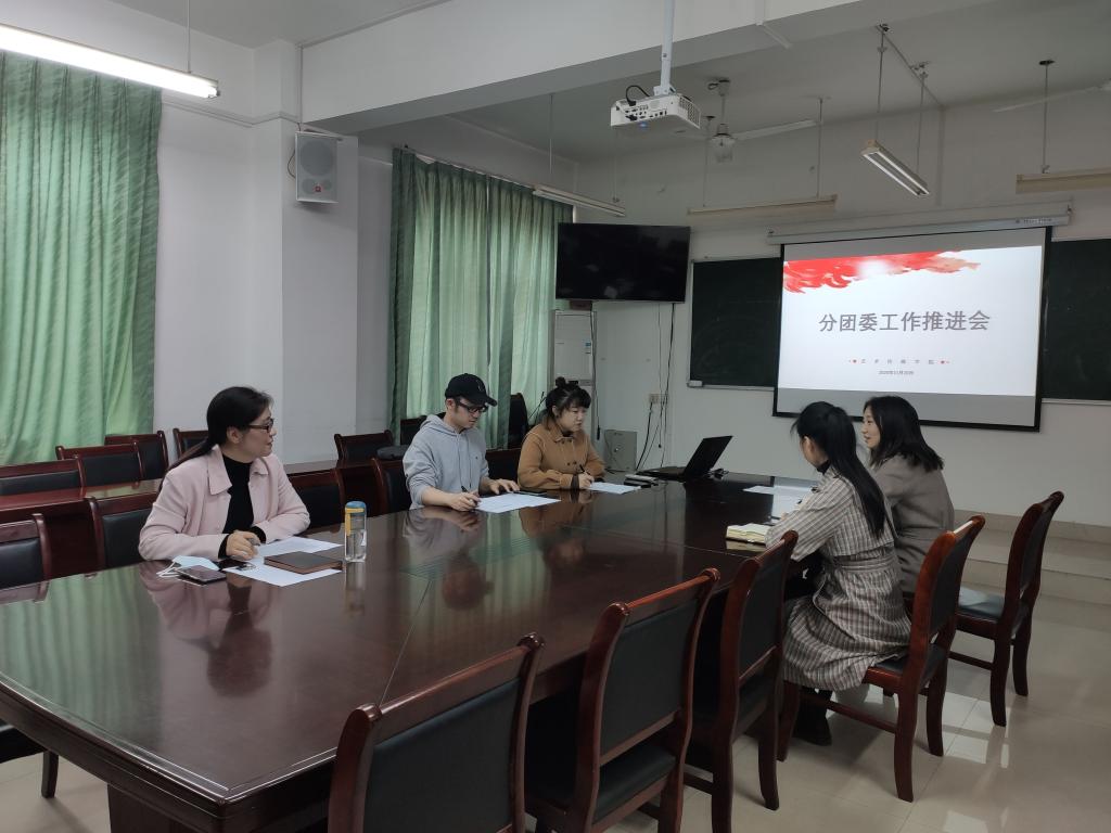 本网讯 11月20日,艺术传媒学院在艺术楼202召开专题会议研究推进学院共青团工作。会议由党委副书记沙渺主持,院党委秘书孙俊、分团委书记戴玉佩、副书记潘文锦、教师兼职副书记朱宇迪参加会议。