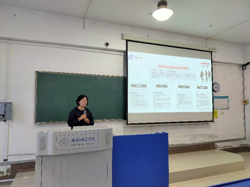 宣讲中,袁丽雅通过PPT演讲的方式向学弟学妹逐一介绍了公司的发展历史、发展规模、结构组成以及未来的发展前景。并且介绍了本次为生科院学弟学妹带来的岗位分配、招聘名额等详细情况。