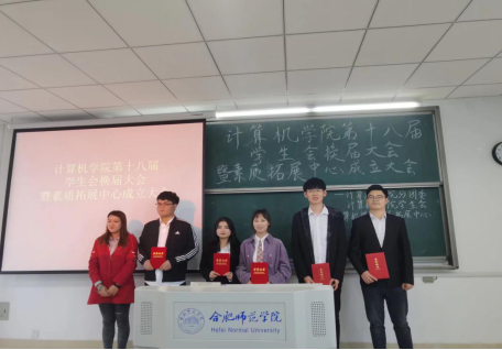 本网讯 11月4日下午2点,计算机学院第十八届学生会换届大会暨素质拓展中心成立大会在我校滨湖校区博学楼A203举行。计算机学院分团委负责人徐梦琦老师、主席团以及学生会全体成员参加此次会议。